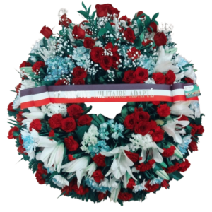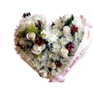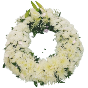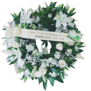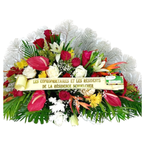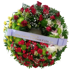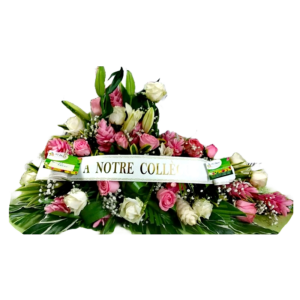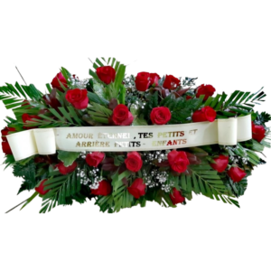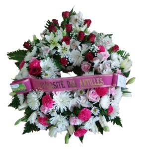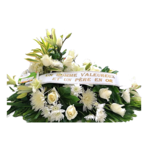 Assez imposante, la couronne mortuaire se distingue nettement des autres éléments de deuil.
